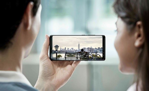 Although the handset is built around a 6.3-inch Quad HD+ Super OMOLED screen with a truly wide 18.5:9 aspect ratio, it still can be considered a true "handset," as it can fit in most users' hands reasonably well.